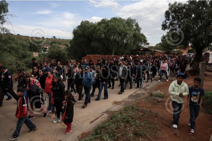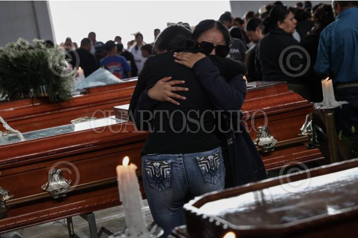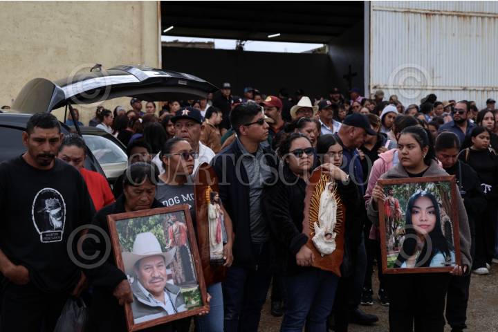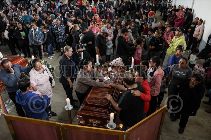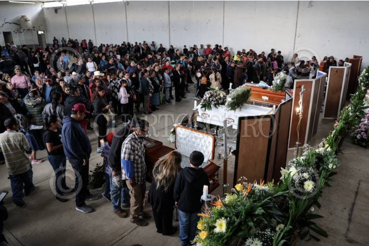 PÁNUCO, ZACATECAS, 02JULIO2025.- Cientos de pobladores despide a Juan Castillo, Sabina Quirón, Nuvia Vanessa Castillo, Raúl Castillo, Hortensia Quirón y Diana Lizbeth López, originarios de la comunidad de Casa de Cerros y quienes perdieron la vida en un accidente en la carretera Sombrerete-Sain Alto el pasado lunes. FOTO: ADOLFO VLADIMIR /CUARTOSCURO.COM