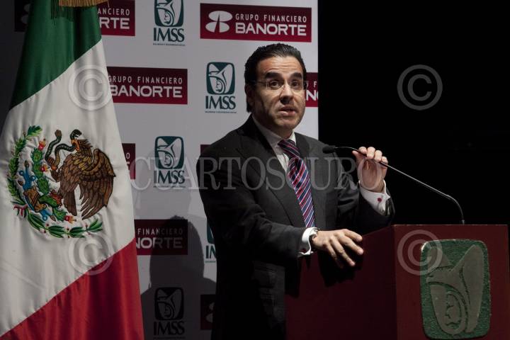 MÉXICO, D.F., 06DICIEMBRE2011.- Alejandro Valenzuela del Río, director general de Grupo Financiero Banorte, durante su discurso en el marco del anunció de fusión de la Afore XXI y Afore Banorte, la ceremonia se realizó en las instalaciones del seguro social. FOTO: MOISÉS PABLO/CUARTOSCURO.COM