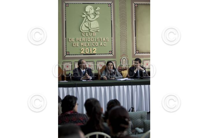 MÉXICO, D.F., 18ENERO2012.- Raul Trejo, Aleida Calleja y Jorge Bravo de la Asociación Mexicana de Derecho a la Información (AMEDI) durante una conferencia de prensa sobre una supuesta fusión entre Televisa y Iusacell que se realizo en el Club de Periodistas. FOTO: RODOLFO ANGULO/CUARTOSCURO.COM