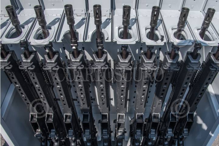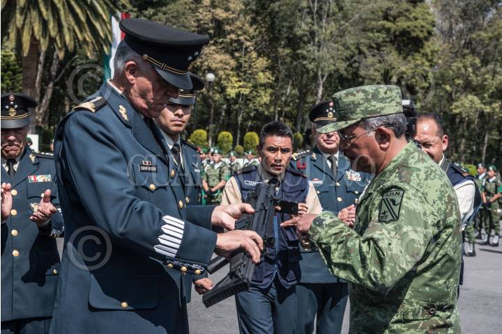 CIUDAD DE MÉXICO, 22NOVIEMBRE2018.- Se llevo a cabo la ceremonia con motivo del cumplimiento de la meta sexenal “Producción de 121,000 Fusiles FX-05 CAL. 5.56 mm.”, realizada en la explanada Damián Carmona del Primer Cuerpo de Ejército del Campo Militar Número 1-A. La arma tiene el nombre de Xiuhcoatl "La serpiente de fuego" y es de completa fabricación mexicana realizada por la Secretaría de la Defensa Nacional (SEDENA), y está categorizada comoun fusíl automático con un calíbre de 5,56 por 45 mm. FOTO: MARIO JASSO /CUARTOSCURO.COM
