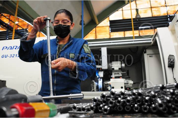 Fabricación de una de las piezas del fusil Xiuhcóatl.