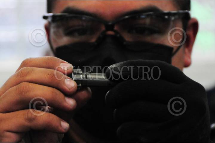 Ensamblado de alguna de las partes del fusil Xiuhcóatl.