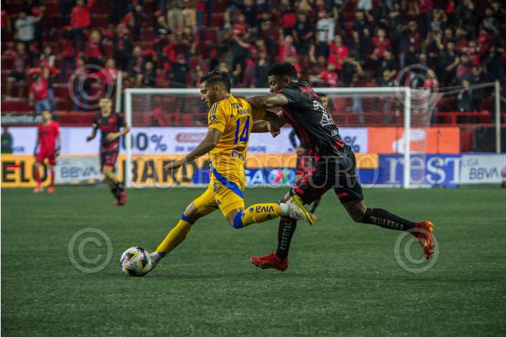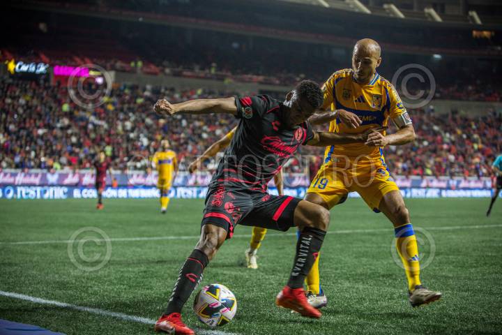 TIJUANA, BAJA CALIFORNIA, 1NOVIEMBRE2024.- Raúl Zúñiga de Xolos de Tijuana y Guido Pizarro de Los Tigres. Xolos de Tijuana sufrió una dolorosa derrota en casa al caer 3-0 frente a Tigres en la jornada 15 del fútbol mexicano, un resultado que complica su posición en la tabla. La derrota mantiene a Tijuana en el quinto lugar, con 25 puntos, y en los lugares de clasificación directa a la “fiesta grande”, con solo dos jornadas restantes. Este revés también rompe el invicto de Xolos como local, una racha que había sido clave en su buen desempeño a lo largo del torneo. La afición en el Estadio Caliente se mostró desconcertada tras ver a su equipo perder por primera vez como local en el torneo, y de manera contundente. Ahora, el conjunto fronterizo buscará recomponer el camino el próximo 6 de noviembre, cuando enfrenten a Juárez como visitantes, en un duelo crucial para mantenerse en la pelea por la liguilla y mantener vivas sus esperanzas de clasificación. FOTO: CHRIS NOYOLA/ CUARTOSCURO.COM