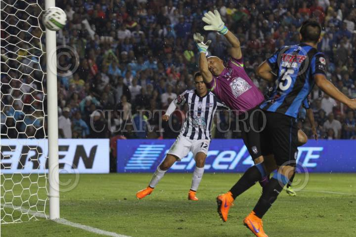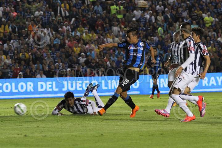 QUERÉTARO, QUERÉTARO, 24MAYO2015.- Ángel Sepúlveda de los Gallos Blancos del Querétaro anotó el primer gol del partido. El Estadio Corregidora, casa de los Gallos Blancos de Querétaro, es el escenario en donde se disputan ambos equipos el boleto a la final de este torneo. FOTO: ISABEL MATEOS /CUARTOSCURO.COM