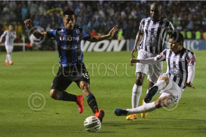 QUERETARO, QUERETARO, 24MAYO2015.- Los gallos blanco de Querétaro obtienen su pase a la final con una victoria de dos goles a cero contra los Tuzos de Pachuca. Ángel Sepúlveda numero 15 Jonathan Bornstein con el número 12, le dan la victoria a los gallos. FOTO: ISABEL MATEOS /CUARTOSCURO.COM