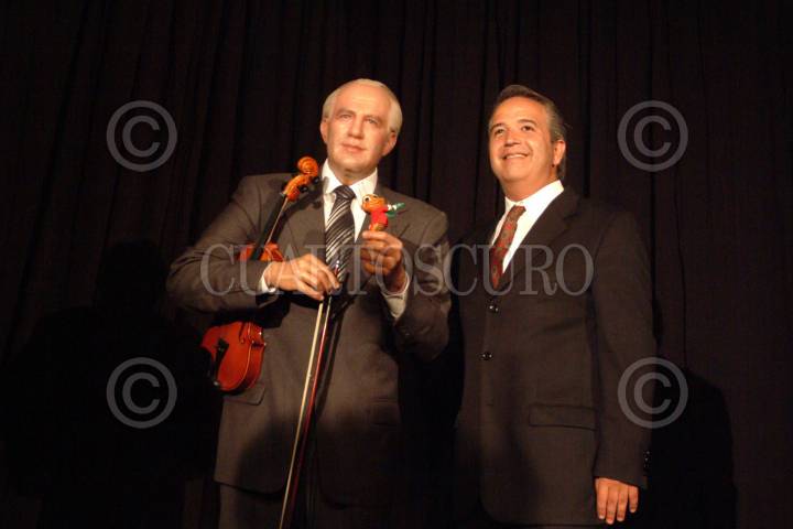 MEXICO, D.F. 15OCTUBRE2004.- La réplica de cera de Gabilondo Soler fue puesta en el museo de cera. Al evento asistieron Ignacio López Tarso, Leticia Bertasca (secretaría de cultura del estado de Veracruz) y Oscar Gabilondo (nieto de Gabilondo Soler) FOTO: Iván Stephens/CUARTOSCURO.COM