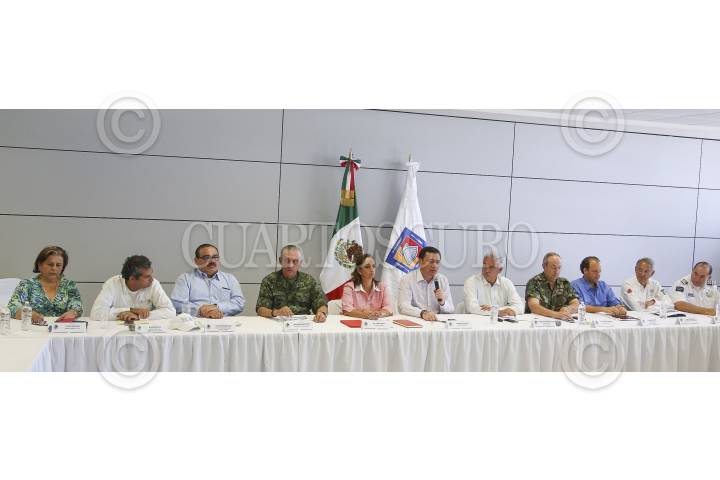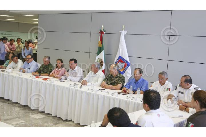 LA PAZ, CAJA CALIFORNIA SUR, 23SEPTIEMBRE2014.- Miguel Ángel Osorio Chong secretario de gobernación acompañado de integrantes del gabinete federal realizaron una evaluacion para la reconstrucción del área afectada tras el paso del huracán Odile. FOTO: CUARTOSCURO.COM