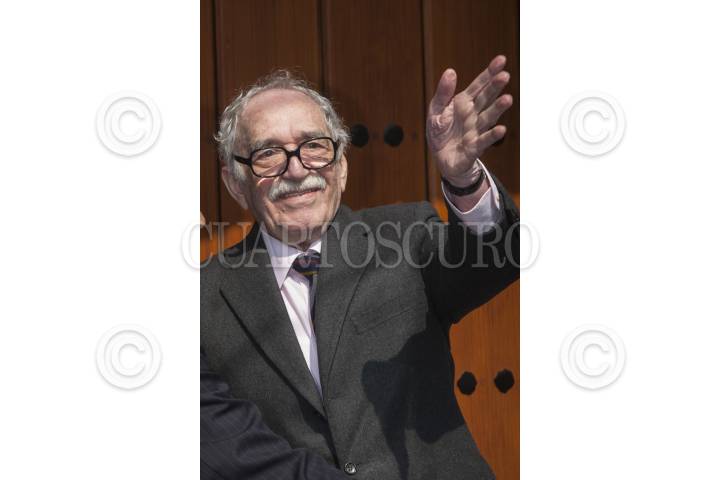 MÉXICO, D.F., 17ABRIL2014.- Gabriel García Marquez, premio Nobel de literatura, murió el día de hoy a los 87 años de edad por complicaciones en su salud. En la imagen el escritor saluda a los periodistas el pasado 6 de marzo del 2013, día que cumplió 86 años. FOTO: ARCHIVO/ FRANCISCO RODRIGUEZ / CUARTOSCURO.COM