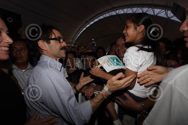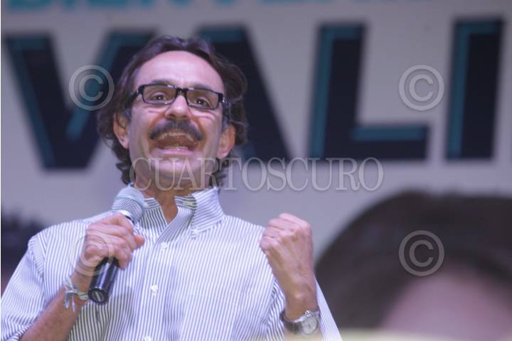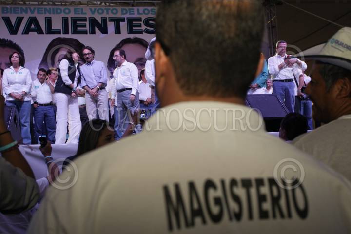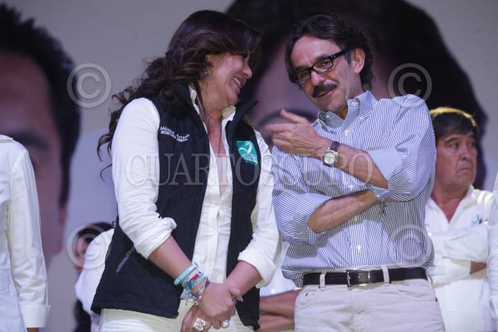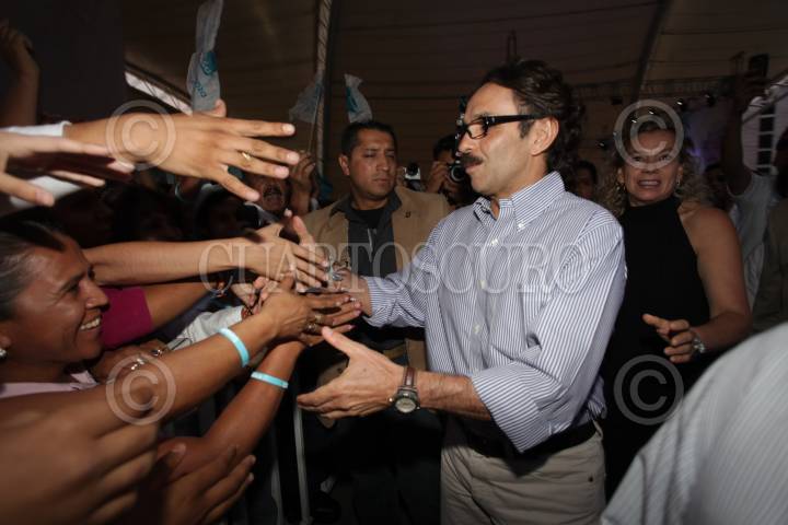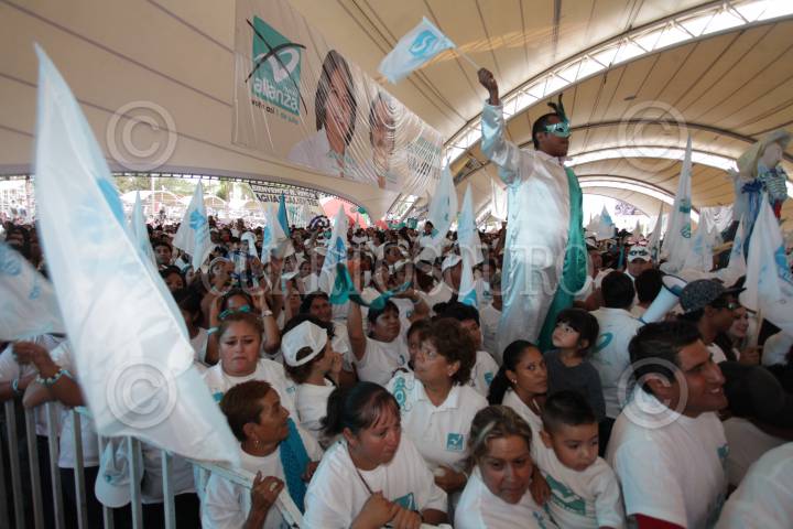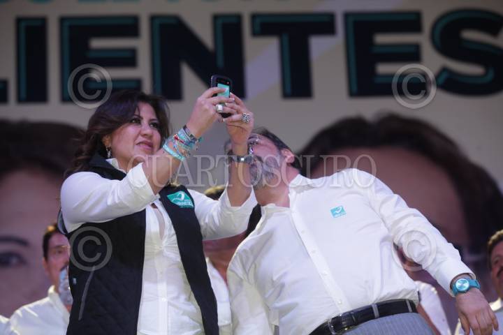 AGUASCALIENTES, AGUASCALIENTES 27 DE JUNIO2012.- Gabriel Quadri De La Torre, candidato presidencial de Nueva Alianza, cerró su campaña en la explanada de la Plaza Patria de esta ciudad. Fue acompañado por el presidente de su partido Luis castro Obregón, la hija de Elba Esther Gordillo y secretaria General, Mónica Arreola Gordillo, su esposa Thelma Lazcano, sus hijos Luciano, Paulo y Andrés. FOTO: JUAN PABLO ZAMORA /CUARTOSCURO.COM