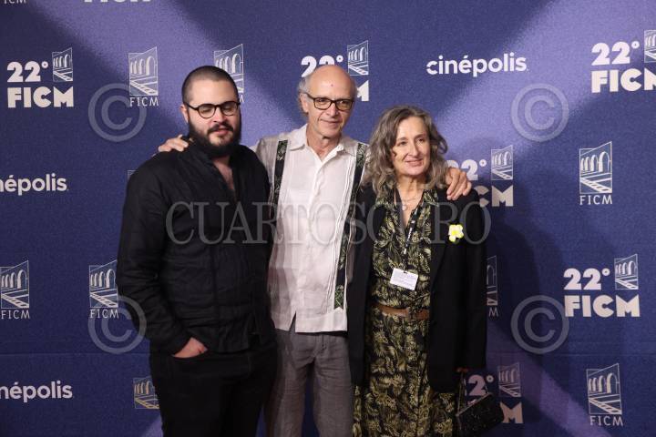 MORELIA, MICHOACÁN, 19OCTUBRE2024. Matías Rulfo, Juan Carlos Rulfo y Tania Olhovich a su paso por la alfombra roja y gala de la película “Pedro Páramo”, en su estreno como parte de las actividades del 22° Festival Internacional de Cine de Morelia, en el Teatro Mariano Matamoros. FOTO: EDGAR NEGRETE LIRA/CUARTOSCURO.COM