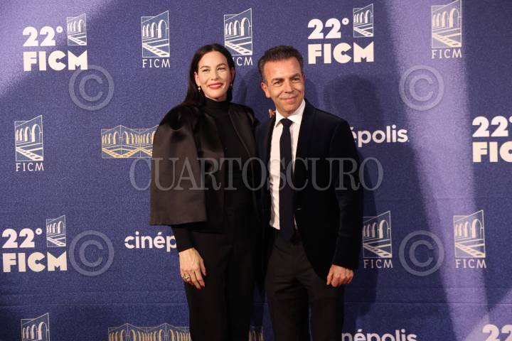 MORELIA, MICHOACÁN, 18OCTUBRE2024. Liv Tyler y Alejandro Ramírez a su paso por la alfombra roja de la gala inaugural del 22° Festival Internacional de Cine de Morelia, presentando la película “Emilia Pérez “. FOTO: EDGAR NEGRETE LIRA/CUARTOSCURO.COM