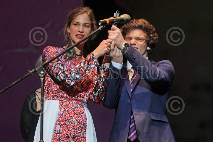 ZAPOPAN, JALISCO, 07MARZO2015.-Los protagonistas de la cinta Io e t, del Director Italiano, Bernardo Bertolucci durante la entrega del Premio Mayahuel Internacional, esto en la Gala Inaugural de la edición 30 del Festival Internacional de Cine en Guadalajara FICG 2015, que se llevo a cabo en las instalaciones del Auditorio Telmex. FOTO: FERNANDO CARRANZA GARCIA / CUARTOSCURO.COM