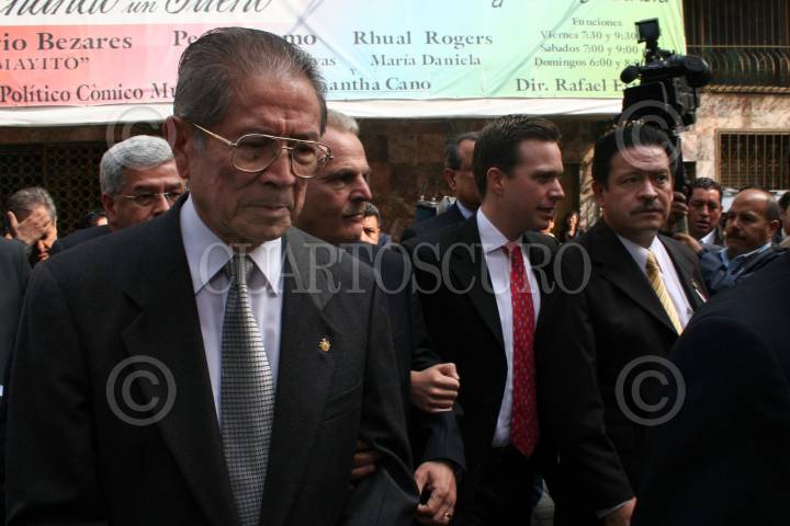 MÉXICO, D.F. 100CTUBRE2006.- El galardonado con la medalla Belisario Domínguez, Jesús Kumate Rodríguez a su llegada al senado, acompañado por Francisco Labastida, legislador priísta, Carlos Navarrete, coordinador de la bancada perredista. FOTO: PAOLA HIDALGO/CUARTOSCURO.COM