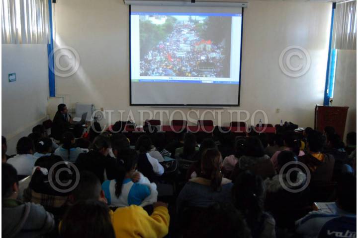 ZACATECAS, ZACATECAS, 13FEBRERO2009.- El día de ayer en las instalaciones de la Universidad Politécnica de Zacatecas fue inaugurada la exposición 'Oaxaca Tierra Herida' del fotógrafo Raúl Estrella quien fue galardonado con el premio -Rey de España 2008-. Al evento lo acompaño Pedro Valtierra director de la agencia Cuartoscuro y de la Fototeca de Zacatecas. FOTO: CARLOS SEGURA/CUARTOSCURO.COM