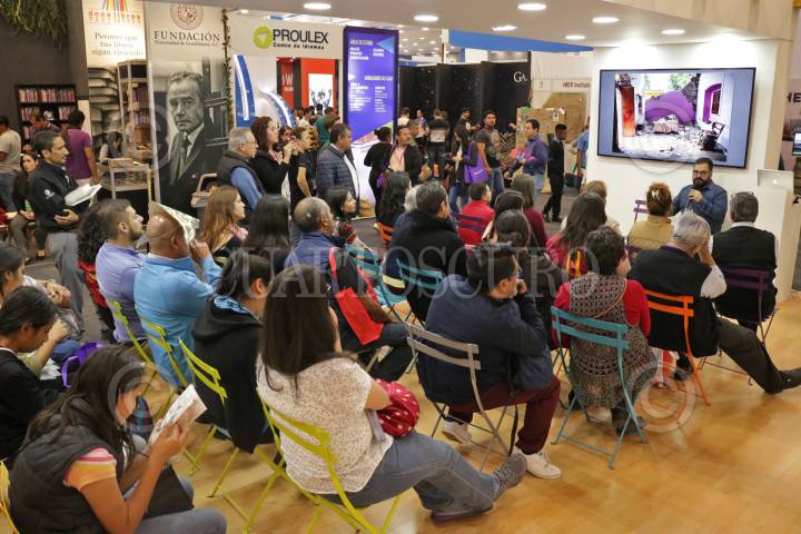 GUADALAJARA, JALISCO, 03DICIEMBRE2017.- Isaac Esquivel Fotoperiodista de la Agencia Cuartoscuro y próximamente galardonado con el Premio Nacional de Periodismo 2016, sostuvo una charla denominada “La Fotografía durante el Sismo del 19S de 2017”, con asistentes a la Feria y en especifico al Stand de la Ciudad de México CDMX, en el marco de la edición 31 de la Feria Internacional del Libro de Guadalajara (FIL), que se lleva a cabo en las instalaciones de la Expo y en donde el invitado de Honor es Madrid. FOTO: CUARTOSCURO.COM