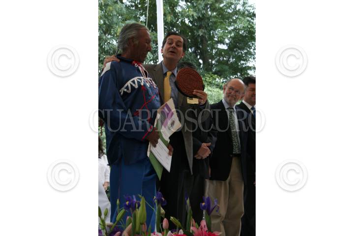 MÉXICO, D.F. 05JUNIO2007.- El secretario de medio ambiente, Rafael Elvira Quezada entregó premios al merito ecológico en el marco del día mundial del medio ambiente. En la imagen con el galardonado Antonio Flores. FOTO: PAOLA HIDALGO/CUARTOSCURO.COM
