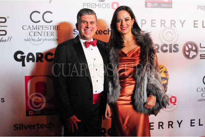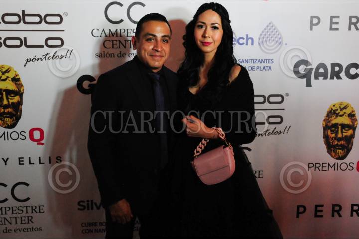 Carlos Ignacio y su esposa durante su paso en la Alfombra Roja Premios Q.