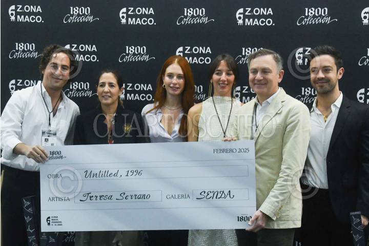 CIUDAD DE MÉXICO, 06FEBRERO2025.- Aura Hernández de "Suma", recibe el Galardón Patiño-Liebohn, durante tercer día de actividades de “Zona Maco: 2025” en el Centro de Convenciones Citibanamex. En la muestra de arte contemporáneo participan más de 200 galerías de expositores internacionales y nacionales. FOTO: MARIO JASSO/CUARTOSCURO.COM