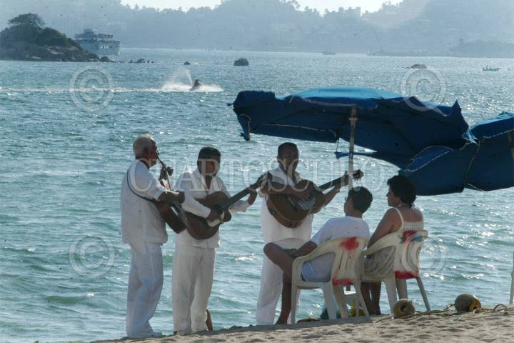 ACAPULCO, GUERRERO19SEPTIEMBRE2004 Músicos de playa, en playa La Gamba en Acapulco, Guerrero, hoy concluye el puente de las fiesta patrias FOTO: Miguel Dimayuga/CUARTOSCURO.COM