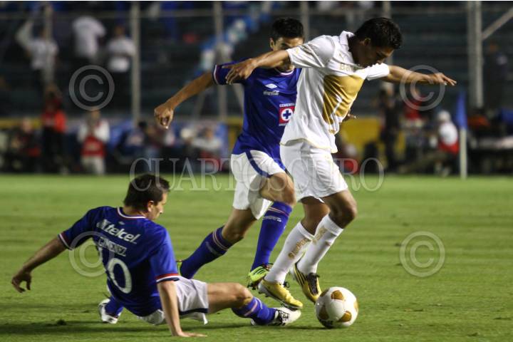 MÉXICO, D.F., 20NOVIEMBRE2010.- Javier Cortes de los Pumas de la UNAM pelea el balón durante el partido de vuelta en contra de la Maquina Celeste del Cruz Azul que se realizo en el Estadio Azul; partido de cuartos de final que ganó Pumas 2 goles por 0 pasando así a semifinales. FOTO: RODOLFO ANGULO/CUARTOSCURO.COM