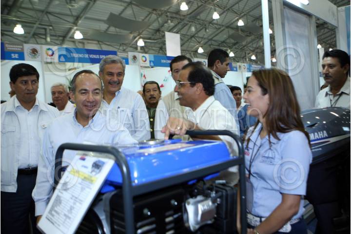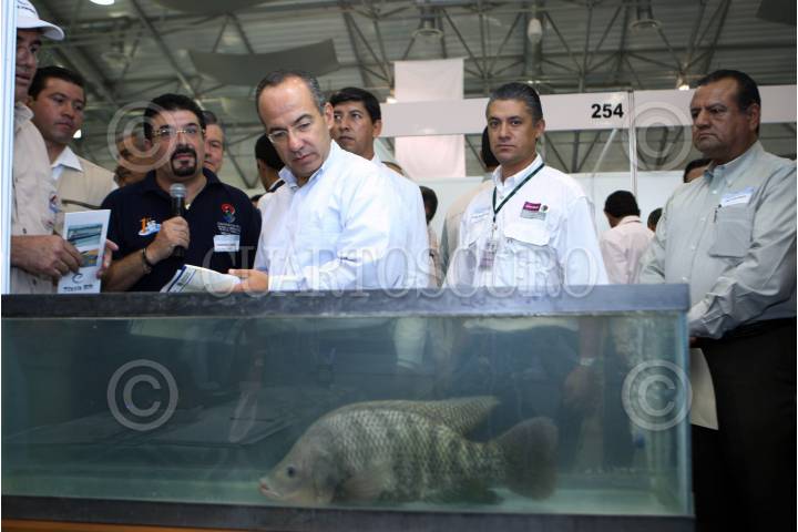 BOCA DEL RIO, VERACRUZ, 07AGOSTO2008.- El presidente Felipe Calderón Hinojosa, durante el recorrido en el primer encuentro mundial de negocios agropecuarios, pesqueros y forestales, que tuvo lugar en el World Trade Center de este municipio. FOTO: ALFREDO GUERRERO/CUARTOSCURO.COM
