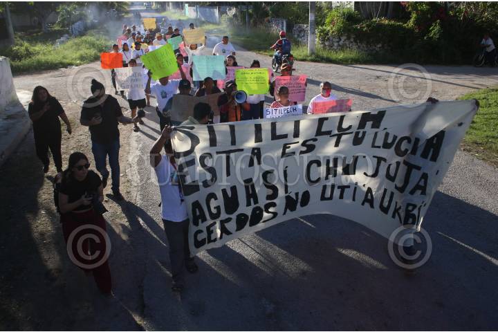 Hoy por la tarde integrantes de La Esperanza de Sitilpech, marcharon por la calle principal de esta comunidad con el fin de expresar su inconformidad tras el fallo en su contra para que la Granja Porcícola de Kancabchén II, la cuál se encuentra a menos de un kilómetro de distancia de esta comisaría, continúe operando. Cabe señalar que en el mes de abril de 2022 el Tribunal colegiado ordenó al Juez Primero de Distrito conceder la suspensión provisional de esta granja y para el mes de junio del mismo año 48 mil cerdos fueron retirados de esta granja a causa de la suspensión de los pozos. Entre consignas los pobladores exigieron a las autoridades el cierre total de la granja para evitar la contaminación del agua.
