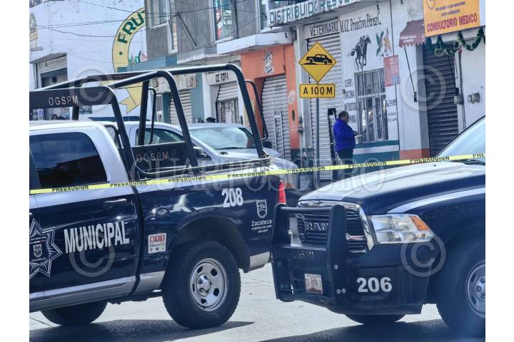 ZACATECAS, ZACATECAS, 18DICIEMBRE2023.- Está mañana fue asesinado Cuauhtémoc Rayas, presidente de la Unión Ganadera de Zacatecas, tras un ataque armado en la capital zacatecana. Rayas, se encontraba en el interior de una veterinaria sobre la avenida San Marcos de la colonia Minera, cuando sujetos armados entraron en el comercio y dispararon directamente contra el ganadero para después ir. La escena del crimen quedó bajo el mando de policías de investigación adscritos a la Fiscalía del Estado. FOTO: GENARO NATERA /CUARTOSCURO.COM