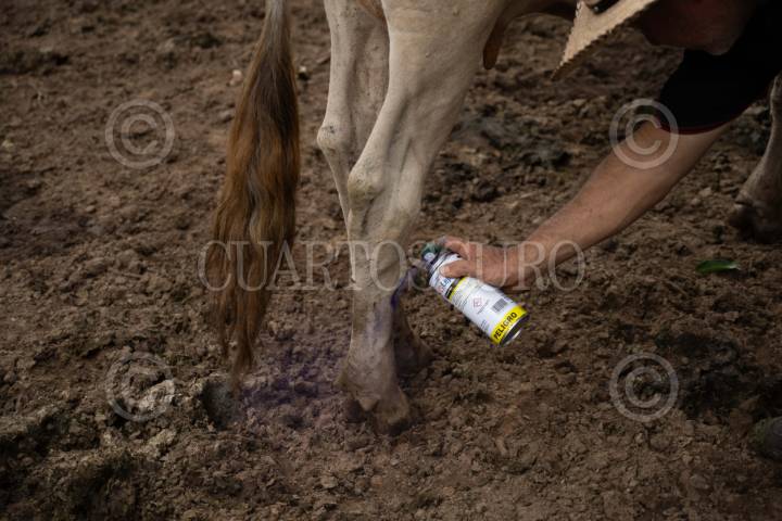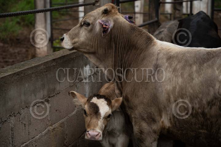 CINTALAPA, CHIAPAS, 12JULIO2025.- La mayor angustia de los pequeños productores ganaderos gira en torno a la salud de los becerros recién nacidos. La mosca del gusano barrenador suele depositar sus huevos en el corte umbilical, una herida fresca y abierta que ofrece una vía directa hacia el interior del cuerpo del animal. Una infestación en esta zona puede ser letal, ya que las larvas avanzan rápidamente hacia los órganos internos, provocando infecciones graves e incluso la muerte en pocos días. Por ello, los ganaderos deben mantener una vigilancia constante sobre los nacimientos, aplicar desinfectantes y repelentes de forma inmediata, y revisar a los animales varias veces al día, aun sin contar con personal ni recursos suficientes. Esta tarea exhaustiva se ha convertido en una rutina crítica para evitar pérdidas irreversibles en el hato. FOTO: ISABEL MATEOS HINOJOSA /CUARTOSCURO.COM