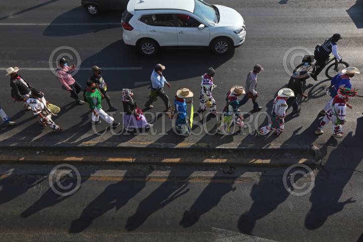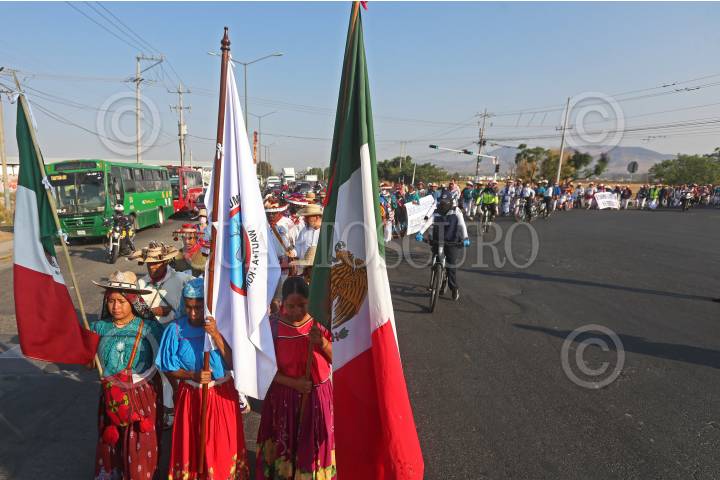 Decenas de indígenas caminan con rumbo al centro de Guadalajara.
