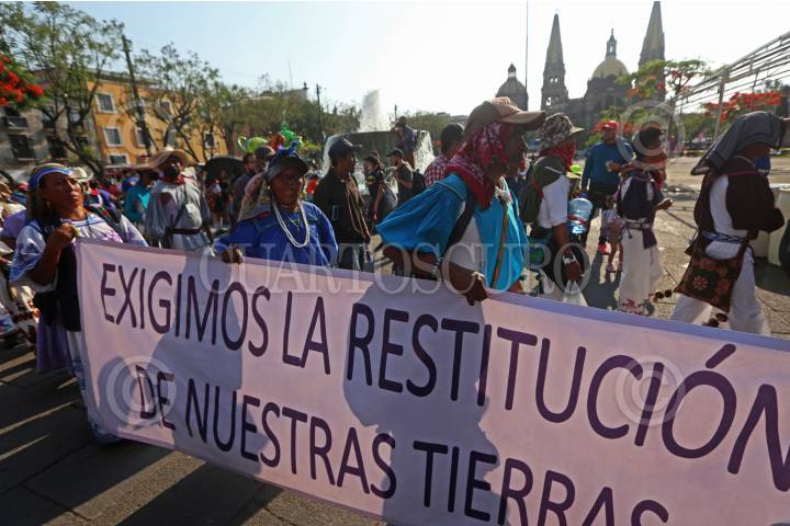 Decenas de indígenas arribaron con al centro de Guadalajara, después de 11 días de caminata desde la zona norte del estado.
