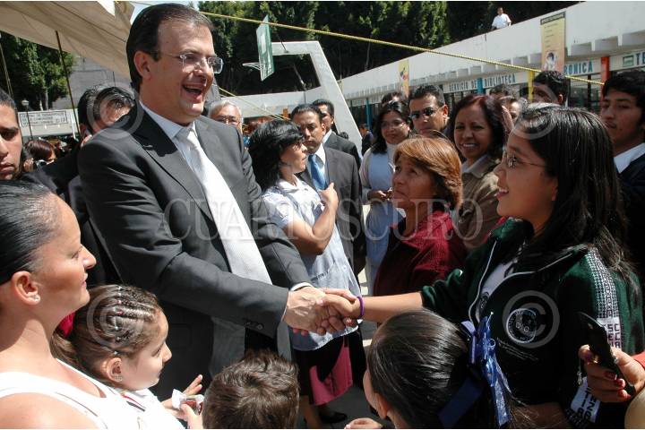 MÉXICO D.F., 06NOVIEMBRE2007 El jefe de gobierno Marcelo Ebrard saluda a niños después de hacer entrega de apoyos económicos del programa Eduación Garantizada. FOTO: RODOLFO ANGULO/CUARTOSCURO.COM