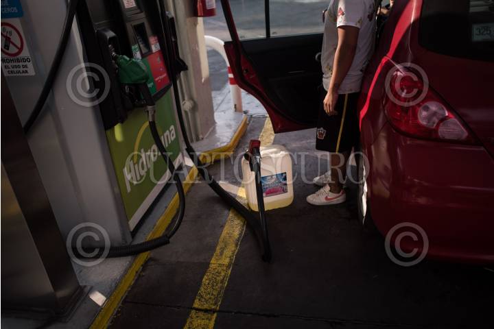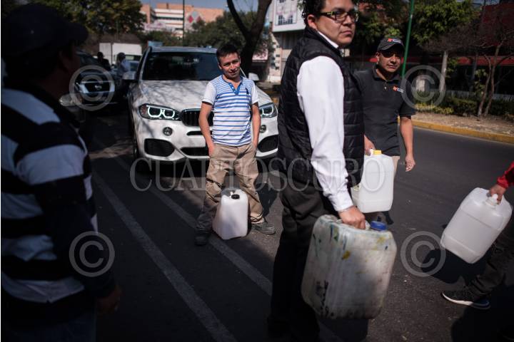CIUDAD DE MÉXICO., 11ENERO2019.- Continúa el desabasto de gasolina en algunas estaciones de combustible del área metropolitana. En esta, ubicada en la avenida Toluca se observan largas filas de automóviles que esperan abastecerse. Algunos otros automovilstas, optan por llenar tambos y garrafones con combustible previniendo la prolongación del desabasto. FOTO: PEDRO ANZA /CUARTOSCURO.COM