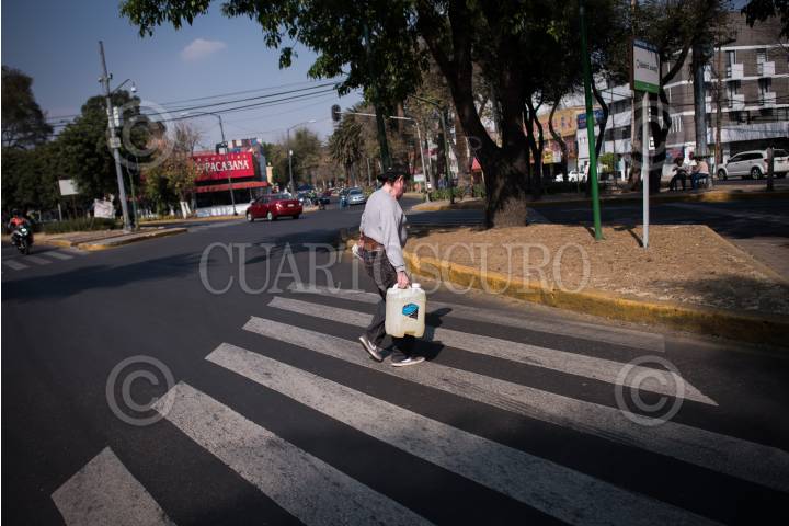 MÉXICO, D.F. 24ENERO2012.- Vendedor de agua camina con sus garrafones sobre la avenida Juárez. El agua envasada en garrafón es el 70% del mercado y crece a tasas de 7%, en tanto que la vendida en botella representa 30% del mercado total pero crece a tasas de 11%, según la Asociación Nacional de Productores y Distribuidores de Agua Purificada (ANPDAPAC),. FOTO: MOISÉS PABLO/CUARTOSCURO.COM