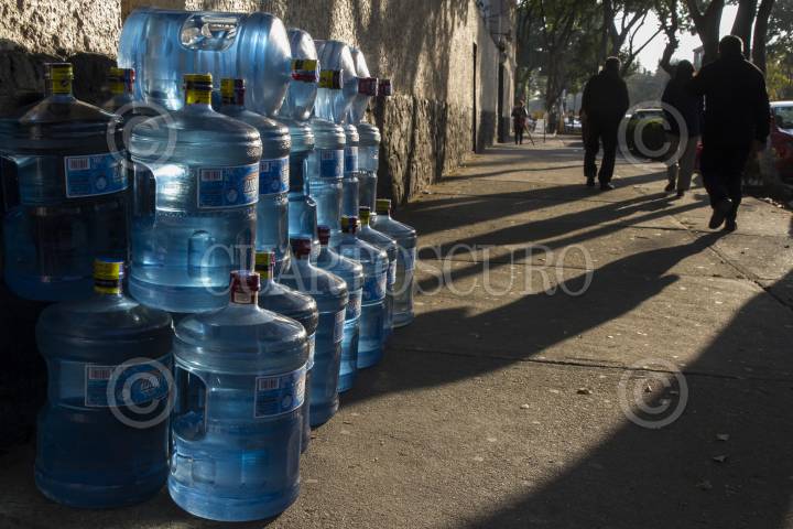 CIUDAD DE MÉXICO, 18ENERO2017.- Garrafones de agua potable esperan ser repartidas en la colonia Doctores. El precio de garrafón actualmente cuesta 38 pesos cada dos meses se ajusta un peso más en su costo. FOTO: MOISÉS PABLO /CUARTOSCURO.COM
