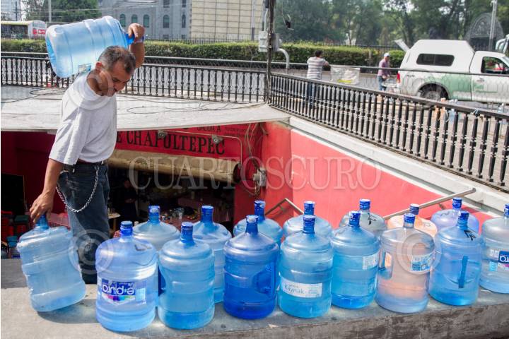 CIUDAD DE MÉXICO, 13MAYO2019.- Repartidores de agua van por las calle de Ayuntamiento en el Centro ofreciendo el vital líquido, nuestro país encabeza la lista de los que consumen más agua embotellada per capita. FOTO: MOISÉS PABLO /CUARTOSCURO.COM