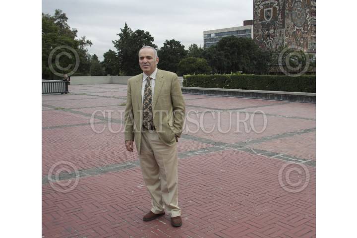 CIUDAD DE MÉXICO, 28OCTUBRE2016.- El maestro del ajedrez Garry Kaspárov platicó con medios de comunicación en la explanada del edificio de Rectoría, en Ciudad Universitaria durante el Gran Encuentro con el ajedrez educativo UNAM 2016. FOTO: ANTONIO CRUZ /CUARTOSCURO.COM
