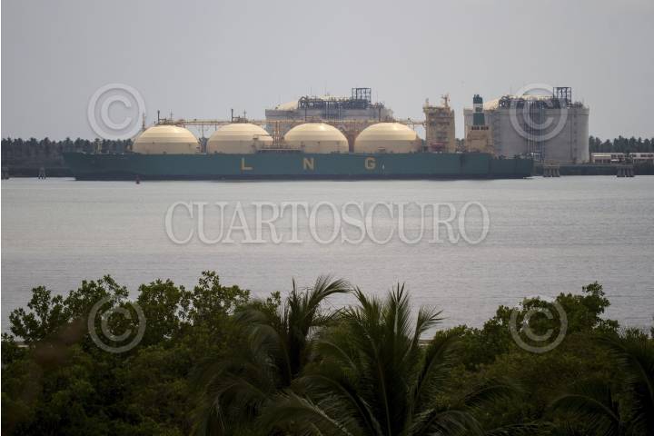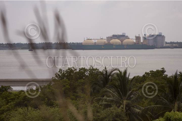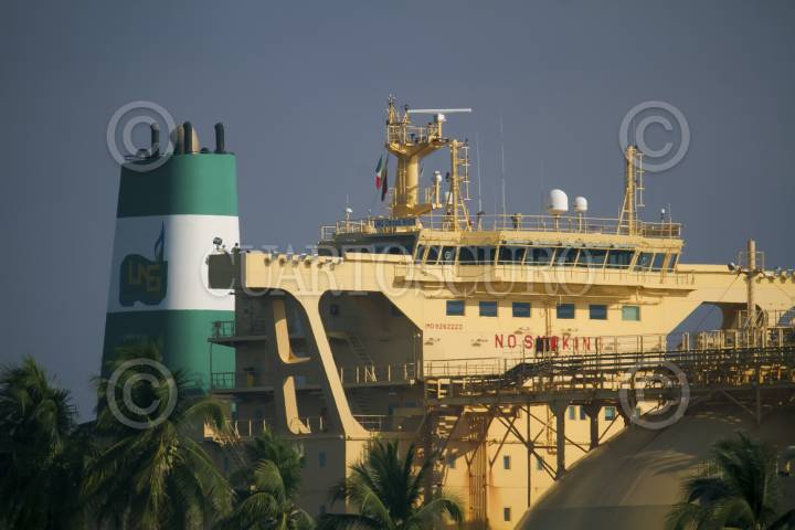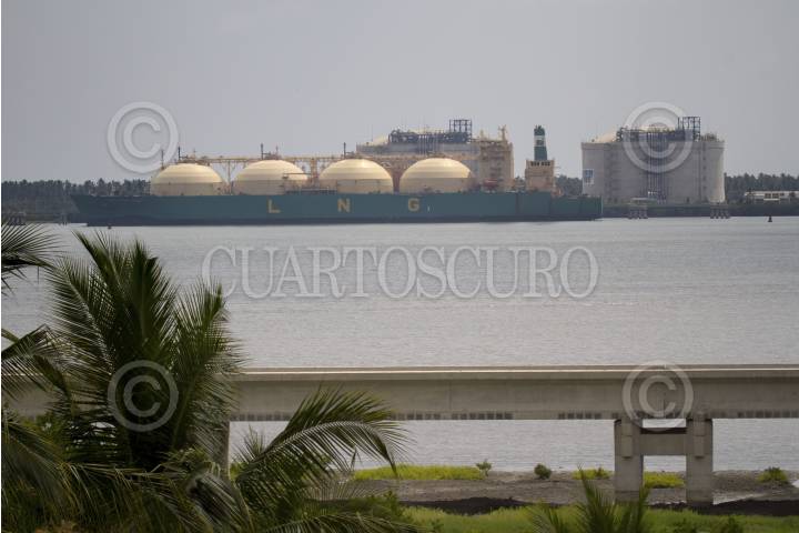 MANZANILLO, COLIMA, 21MARZO2013.- Hoy en la madrugada llego a México el primer cargamento de gas licuado, que abastecerá a industriales de la zona centro-occidente, CFE y Pemex. El buque-tanque “Long Cross River”, con bandera de Bermudas, trasladó 72,394 toneladas de gas natural licuado a la Terminal KMS, en la laguna de Cuyutlán, de este puerto. Según industriales, desde el año pasado la zona Centro-Occidente, ha sufrido desabasto de este energético. FOTO: SERGIO VELASCO /CUARTOSCURO.COM