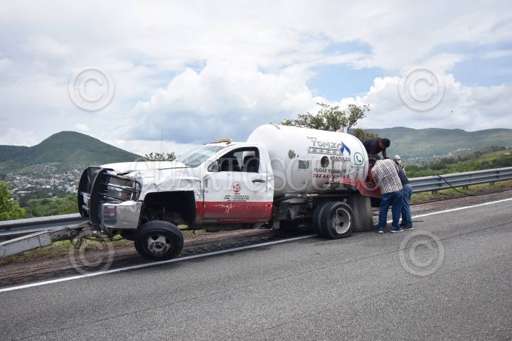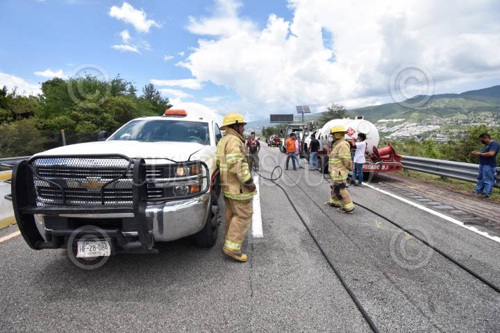La volcadura de una pipa cargada de Gas Licuado de Petróleo (LP) provocó el cierre de los cuatro carriles de la Autopista del Sol por más de ocho horas, en el tramo que va de Chilpancingo hacia Tierra Colorada, en las inmediaciones de Palo Blanco.