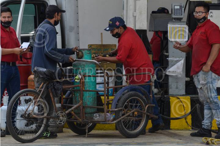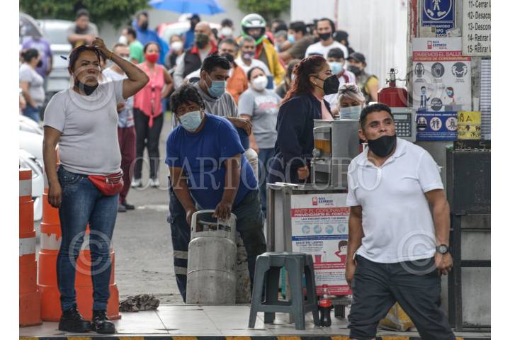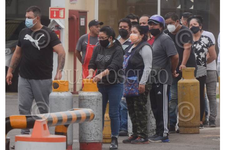 En la expendedora de gas LP, ubicada en Rojo Gómez y Eje 6, se presentaron largas filas de personas que buscaban rellenar sus tanques, tras el paro de más de 24 hora del gremio en oposición a la medida de topar el precio máximo del litro por parte del