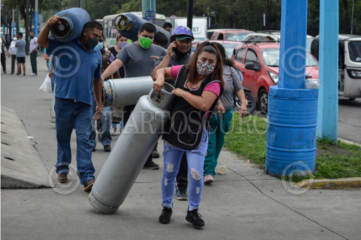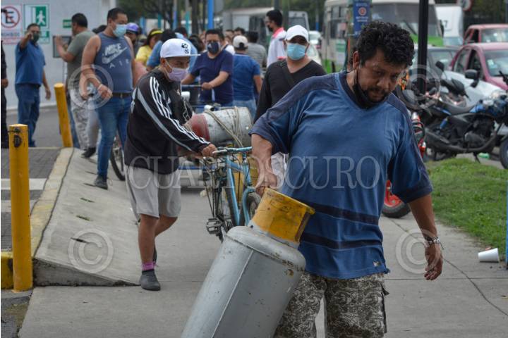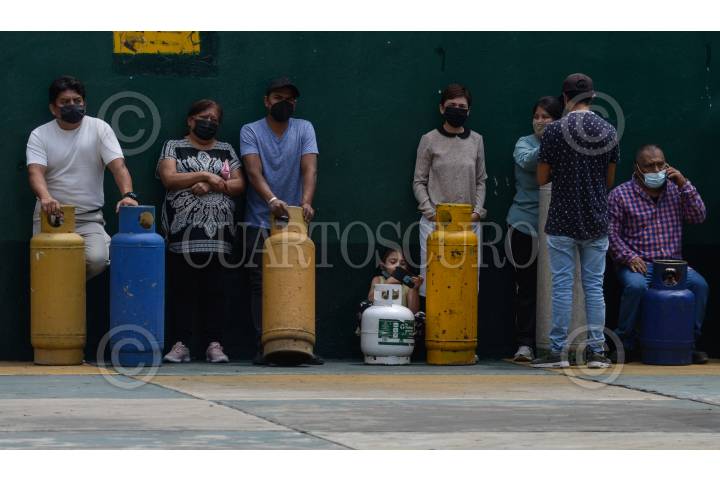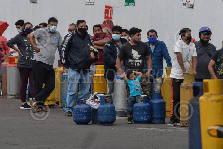 Personas se forman para rellenar sus tanques de gas LP en las distribuidoras de este hidrocarburos ubicadas sobre la avenida Javier Rojo Gómez luego de que volvieran a brindar el servicio tras el paro nacional que el Gremio Gasero Nacional realiza por la entrada en vigor del esquema de regulación de precios de la Comisión Reguladora de Energía (CRE).
