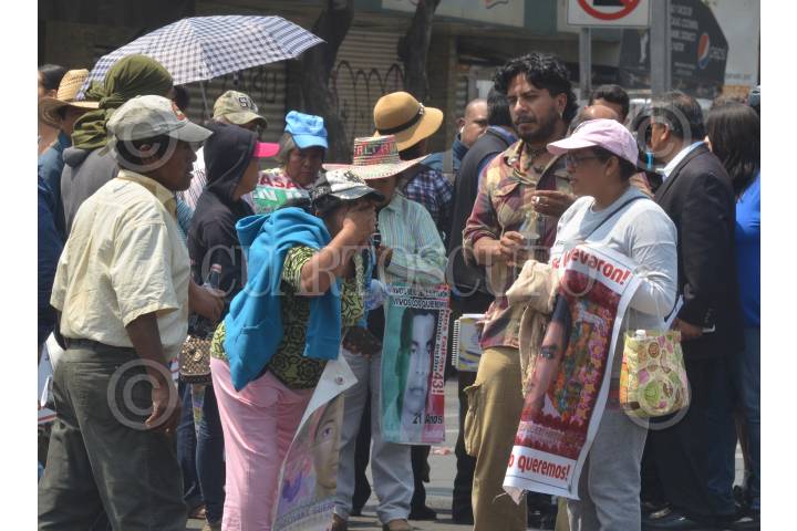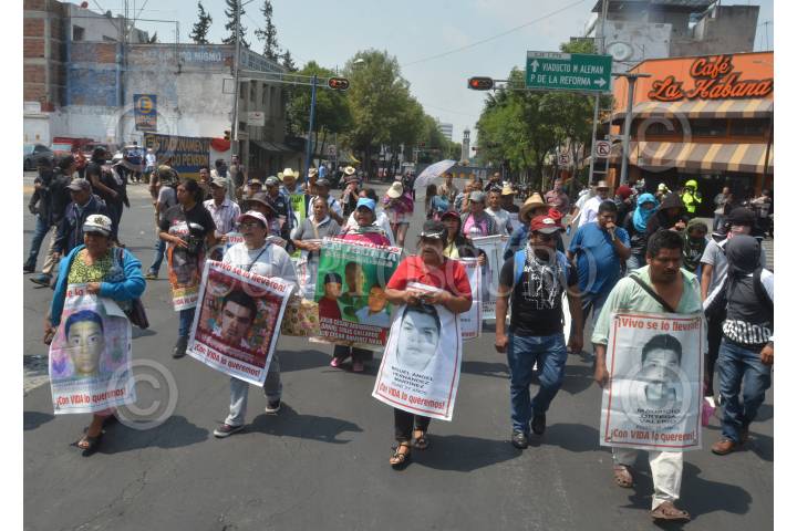 CIUDAD DE MÉXICO, 25ABRIL2017.- Padres de los 43 normalistas desaparecidos de Ayotzinapa se manifestaron en las inmediaciones de la Secretaría de Gobernación, en donde hubo un conato de violencia luego de jóvenes encapuchados lanzarán un par de bombas molotov hacia los federales, quienes respondieron con gases lacrimógenos, tras el momento tenso los manifestantes se retiraron rumbo al campamento que mantienen frente a la PGR. FOTO: ARMANDO MONROY /CUARTOSCURO.COM