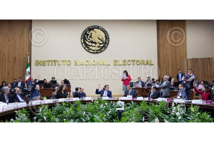 CIUDAD DE MÉXICO, 08JULIO2019.- Consejeros electorales durante la votación en la sesión extraordinaria en la cual se tratado el tema de gastos no reportados durante la elecciones ordinarias en los estados. FOTO: ROGELIO MORALES /CUARTOSCURO.COM