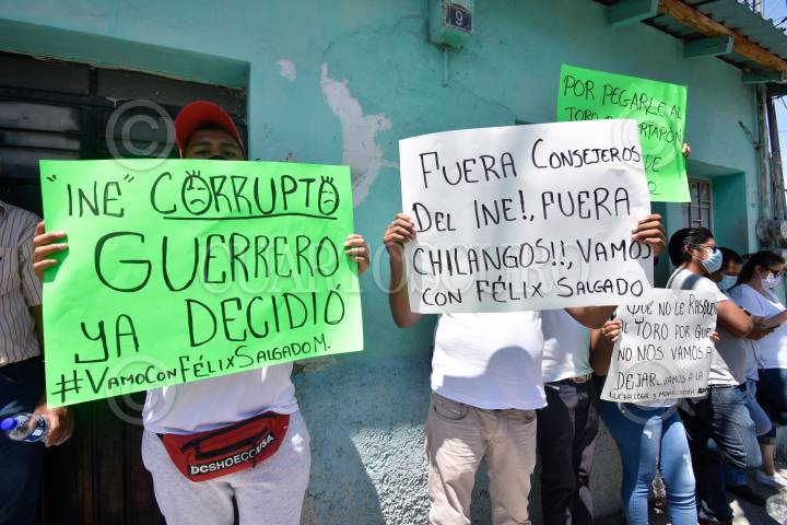 Simpatizantes de Félix Salgado Macedonio a quien el INE le retiró la candidatura por Morena a la gubernatura por no presentar gastos de precampaña se manifestaron en la sede del INE de Chilpancingo, en donde calificaron de corrupción a este instituto por esta decisión.