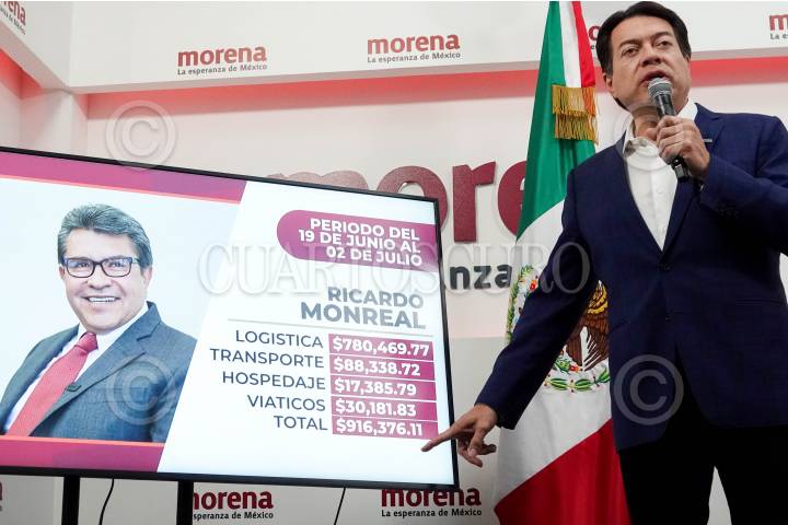 Mario Delgado presentó en conferencia de prensa los gastos reportados, hasta el momento, por el aspirante Ricardo Monreal durante la contienda para ser elegido como representante en 2024.
