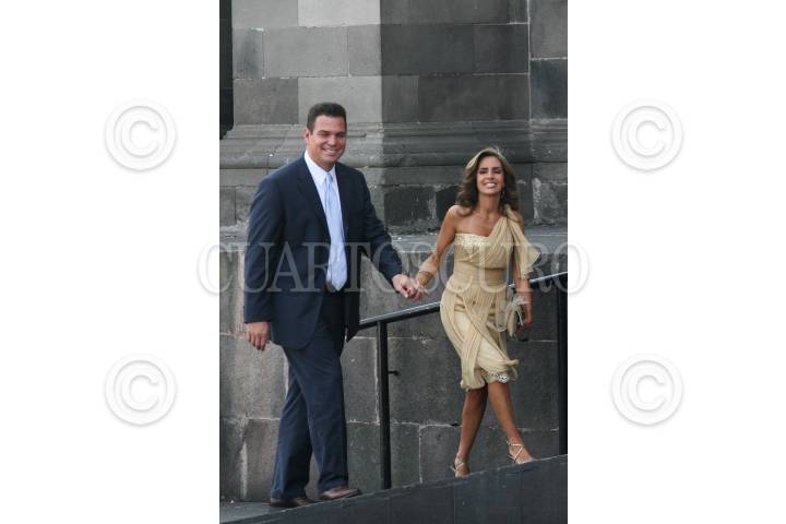 TOLUCA, ESTADO DE MÉXICO, 27NOVIEMBRE2010.- Karla Alemán y Toño Maury acudieron a la boda de Angélica Rivera y Enrique Peña Nieto, gobernador del Estado de México, en la Catedral de Toluca. FOTO: SAÚL LÓPEZ/CUARTOSCURO.COM