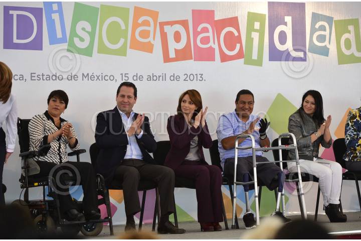 TOLUCA, ESTADO DE MÉXICO, 15ABRIL2013.- Acompañada por Eruviel Ávila Villegas, gobernador del estado; la presidenta del Consejo Ciudadano Consultivo del Sistema Nacional DIF, Angélica Rivera; fueron entregados auxiliares auditivos, zapatos ortopédicos, lentes y despensas alimentarias, como parte de programa "Acciones en grande por la discapacidad". FOTO: CUARTOSCURO.COM