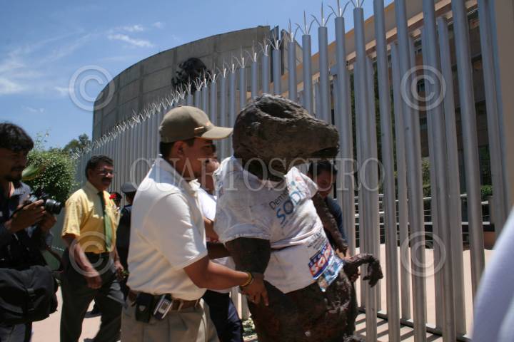 MÈXICO, D.F. 19JULIO2006.- Se realizò una manifestaciòn con algunos intagrantes de la comunidad gay y de la tercera edad afuera del TRIFE, fuè expuesta una rata de latex con publicidad panista. FOTO: Paola Hidalgo/CUARTOSCURO.COM