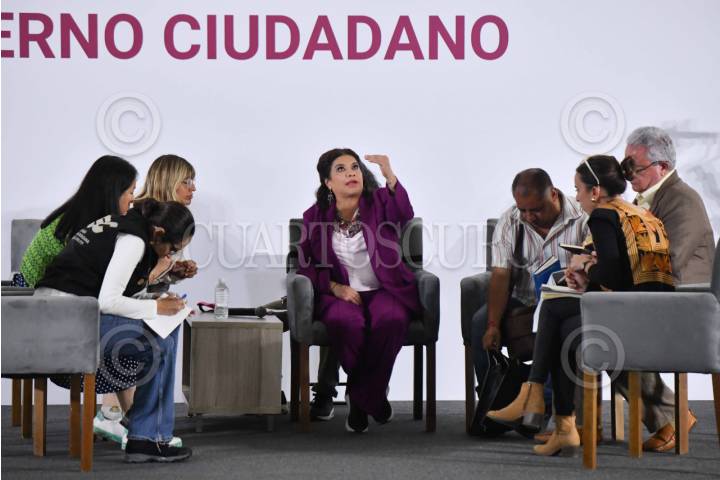 CIUDAD DE MÉXICO, 15JULIO2025.- Clara Brugada, jefa de Gobierno, durante la reunión "Zócalo de Gobierno Ciudadano" en la que escuchó las demandas sociales de algunos capitalinos. FOTO: MARIO JASSO/CUARTOSCURO.COM