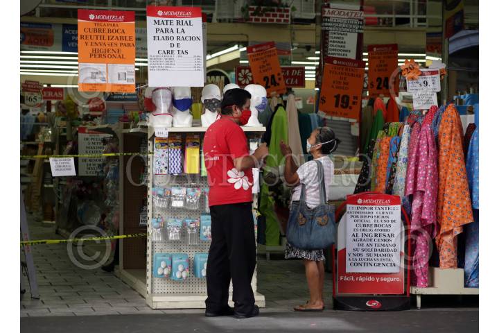 Negocios del centro de la ciudad operan aplicando las medidas sanitarias por pandemia del Covid.19.