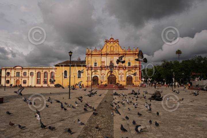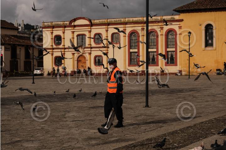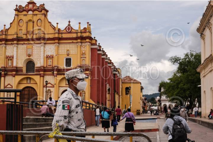 Vista general de la Plaza de la Paz y la Catedral de la ciudad de San Cristóbal durante la contingencia por COVID 19.
